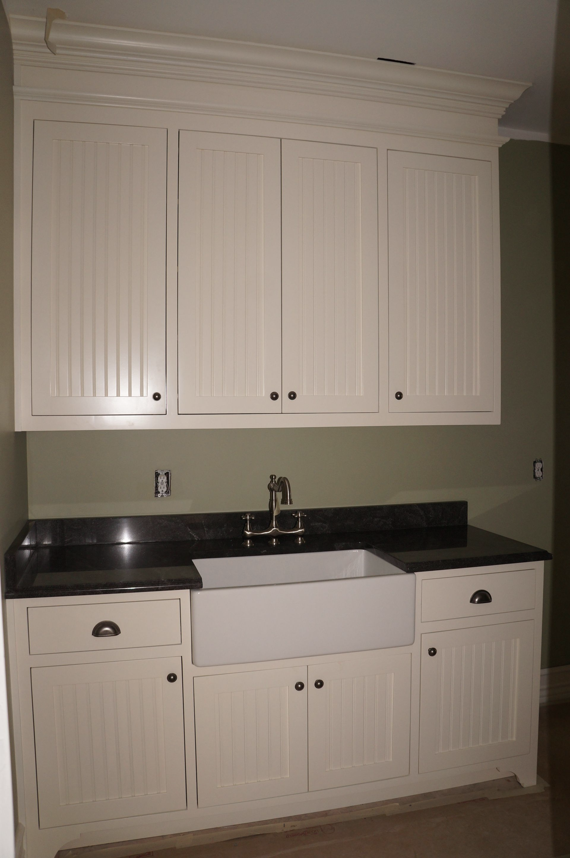 6. No false drawer front above sink doors. Inset style, and feet style 3.