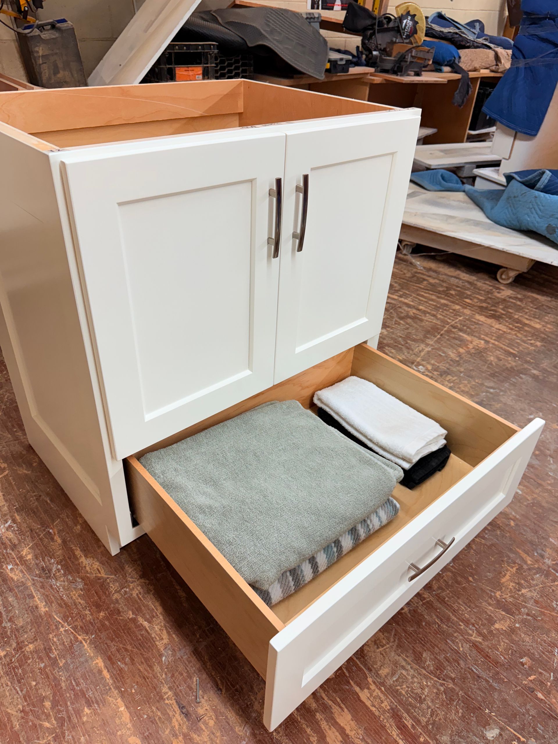 12. Single 20" Door to maximize the drawer sizes. Inset style with furniture style bottom.
