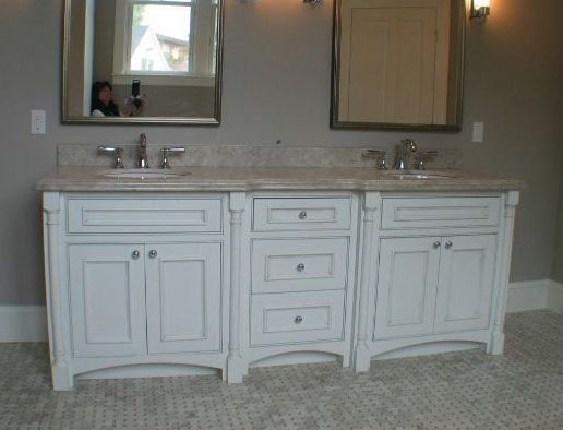 10. 2-Drawer vanities work with a Centered sink and make up drawer between.