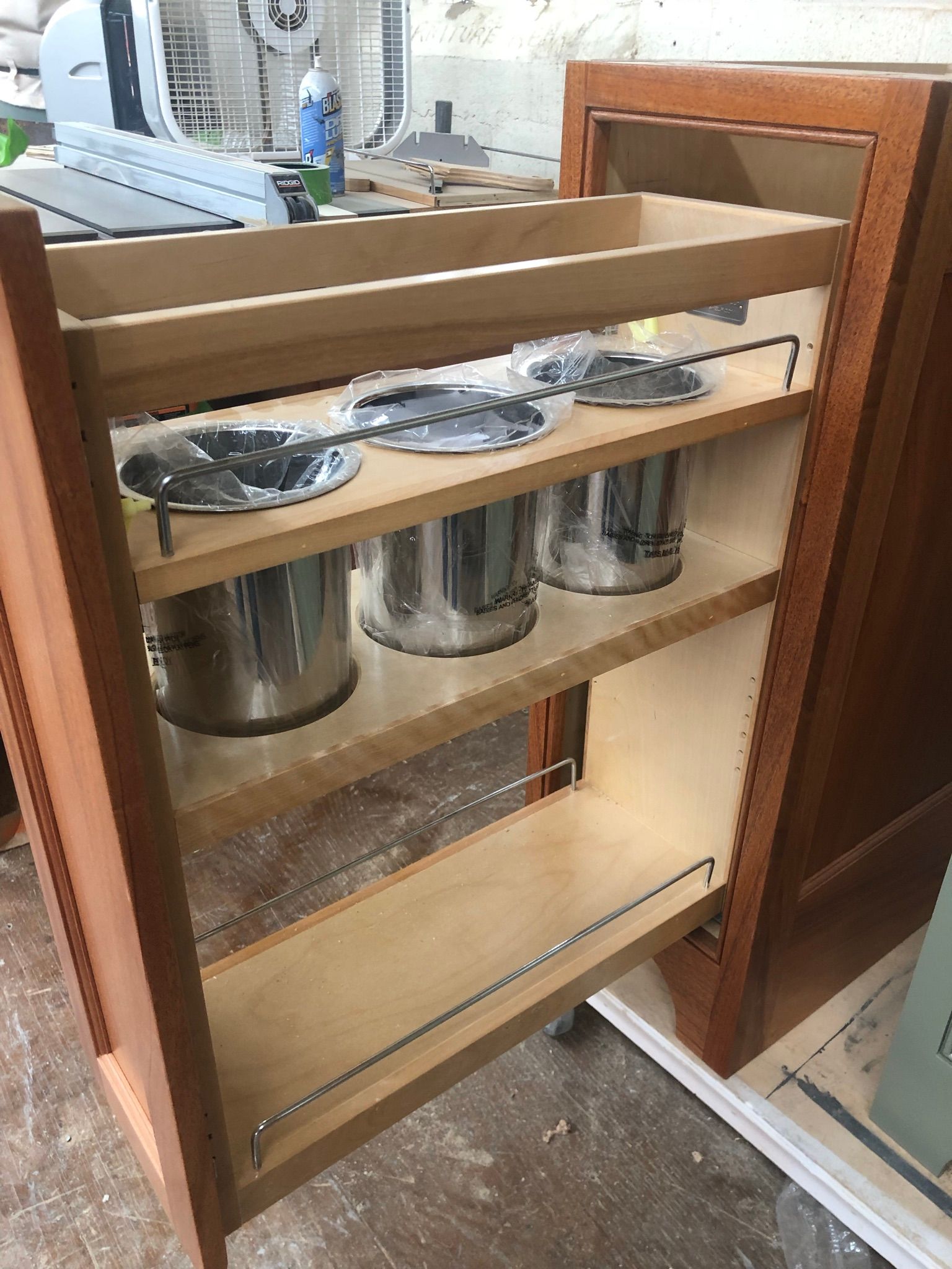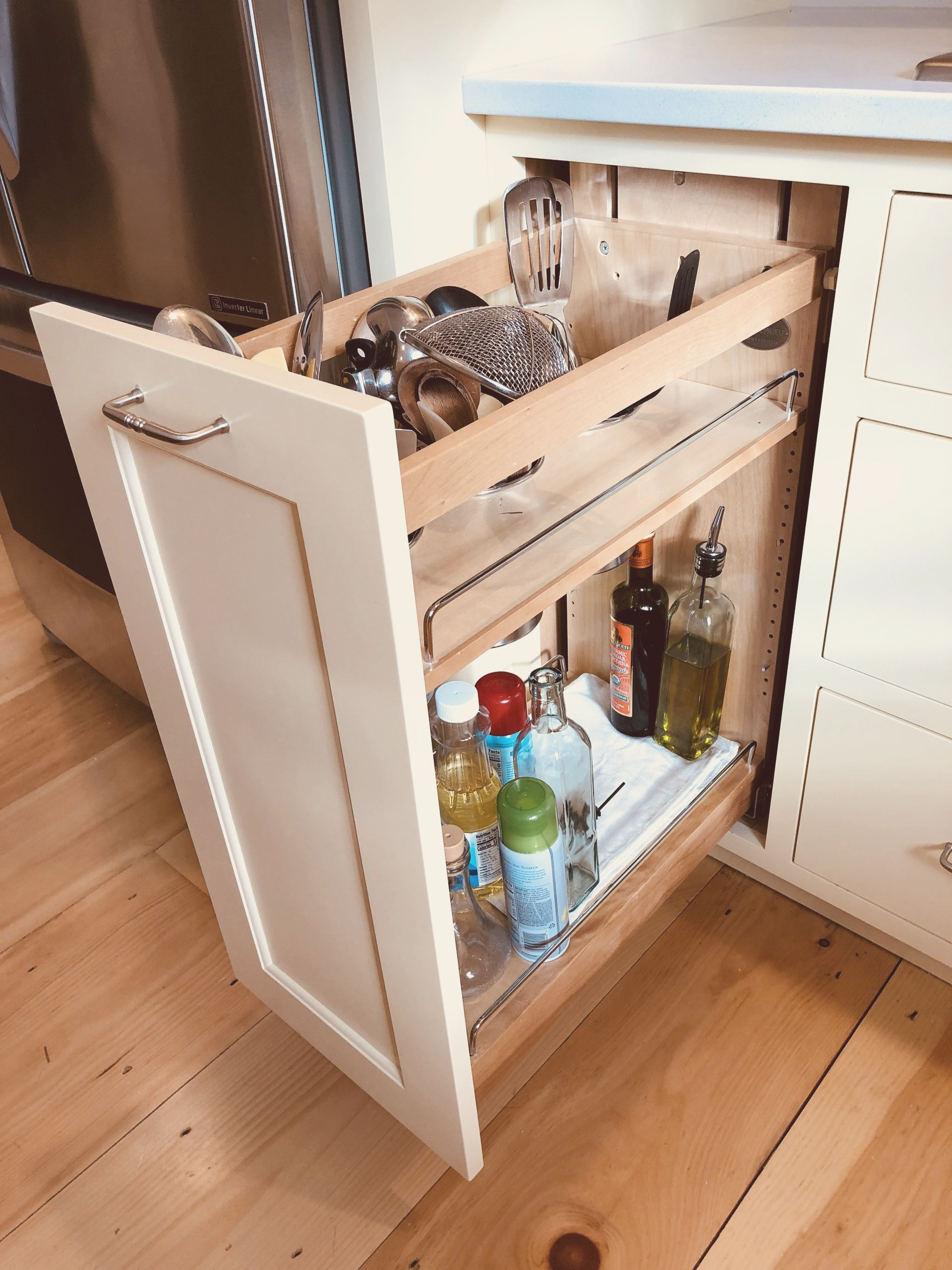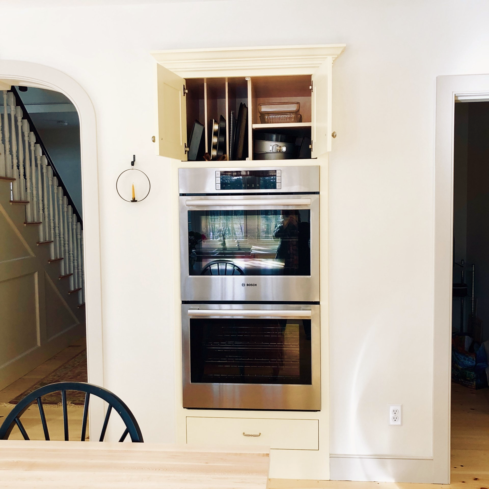 Built-in Double Oven Cabinet with Cookie Sheet Dividers above, and