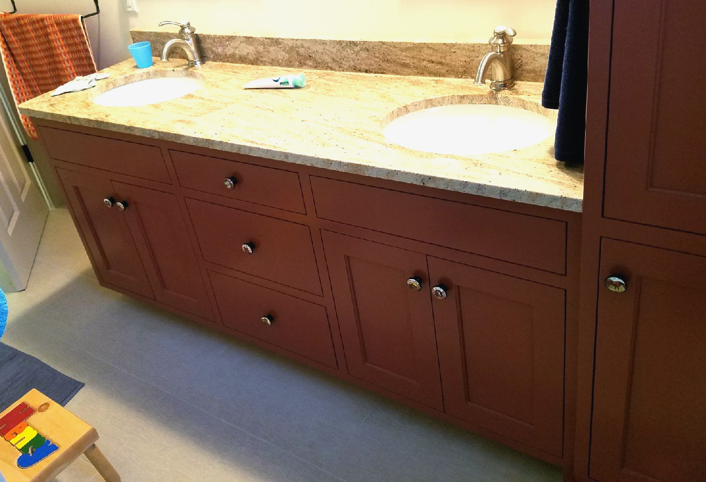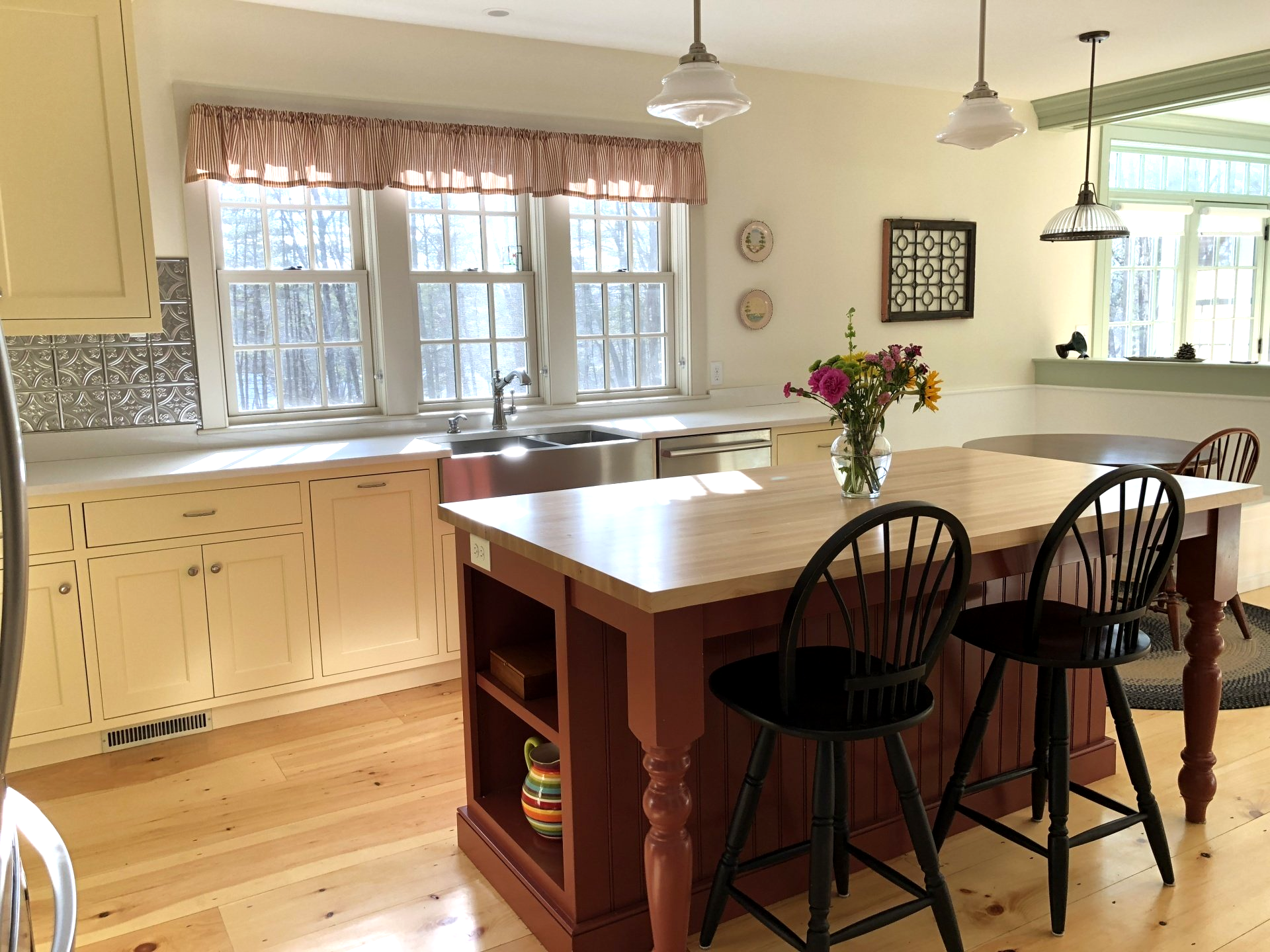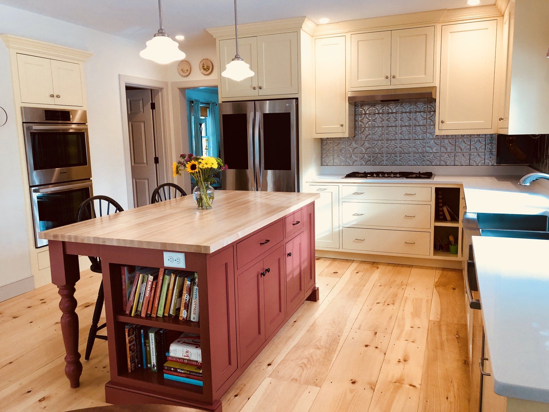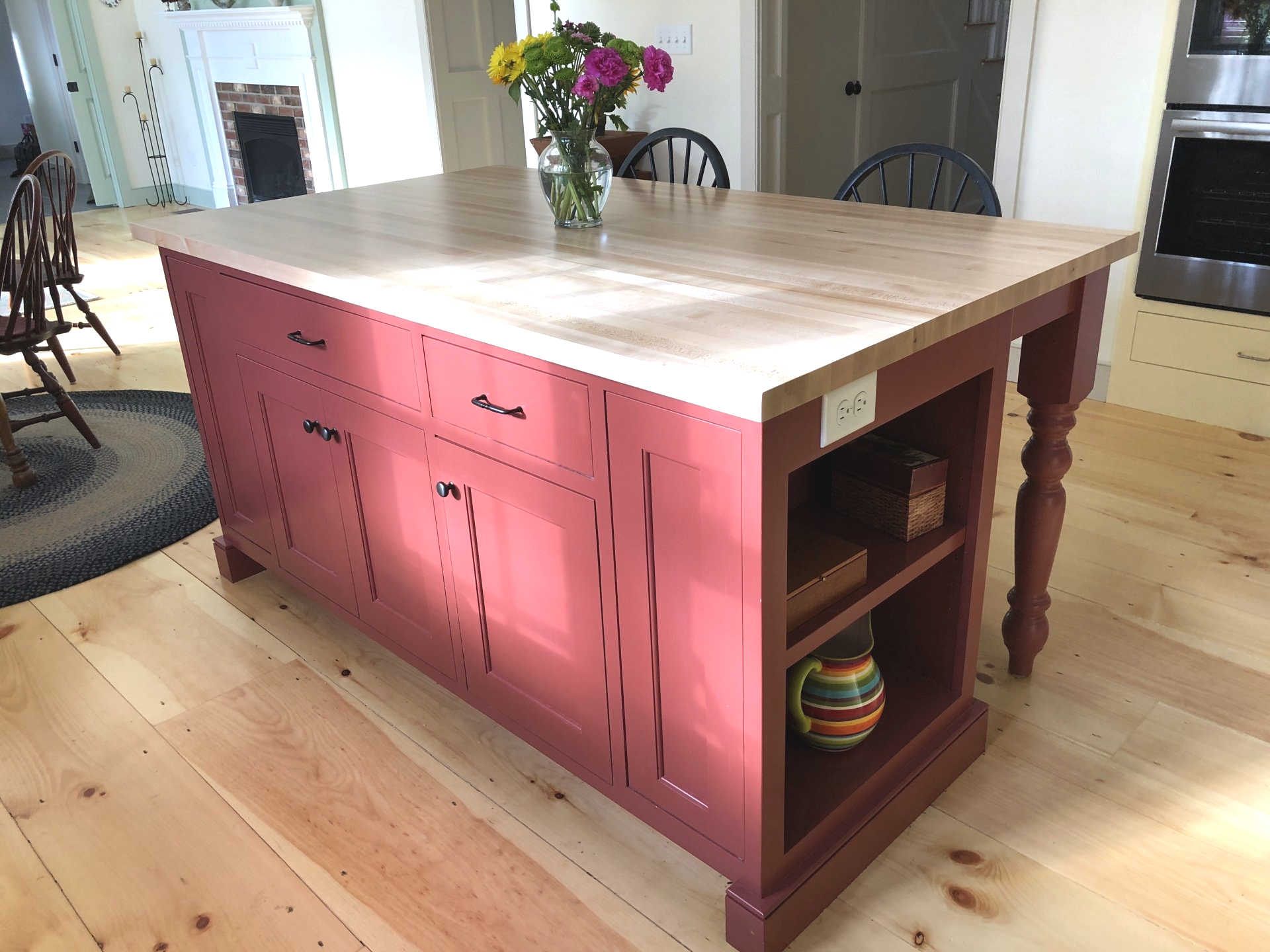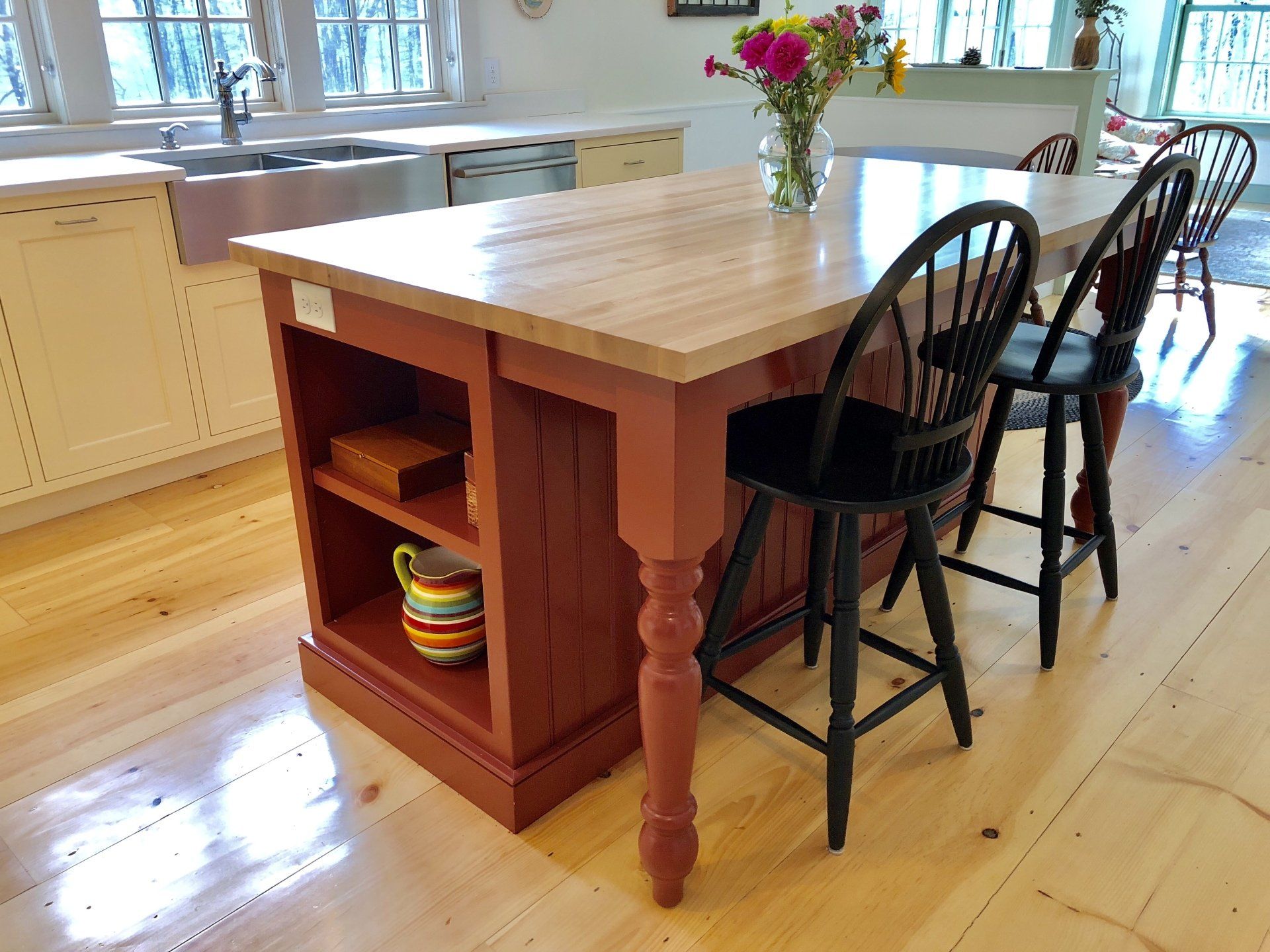 A Lovely Spanish-Red Island with Bookcase ends & Beadboard Back.
