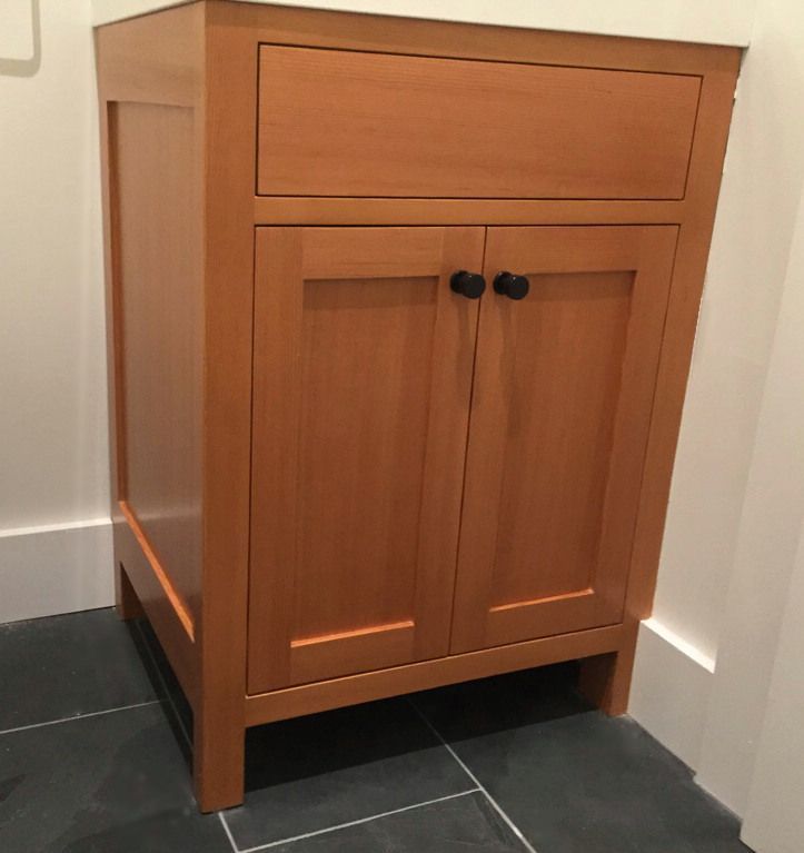 11. Fir Vanity with natural finish. Framed Side with legs and side panels. Inset 28"