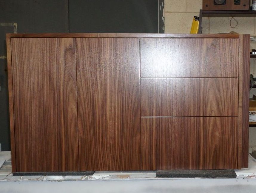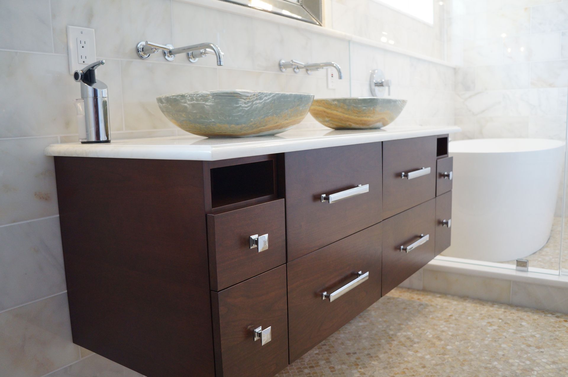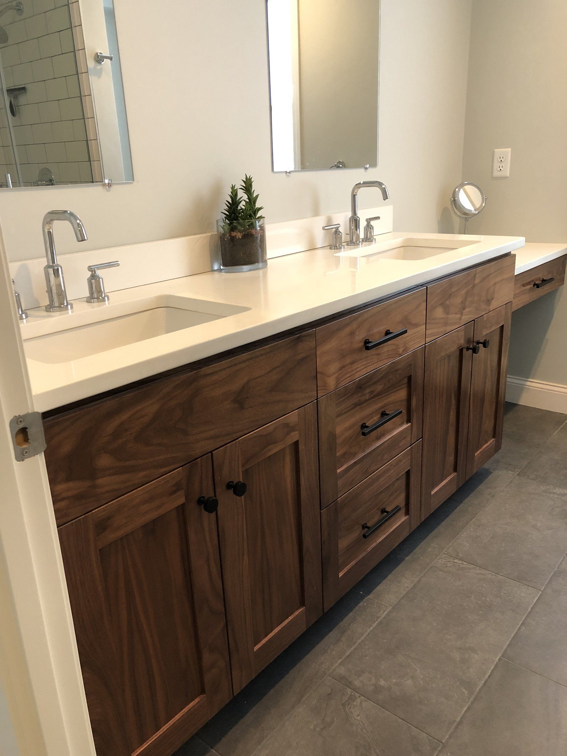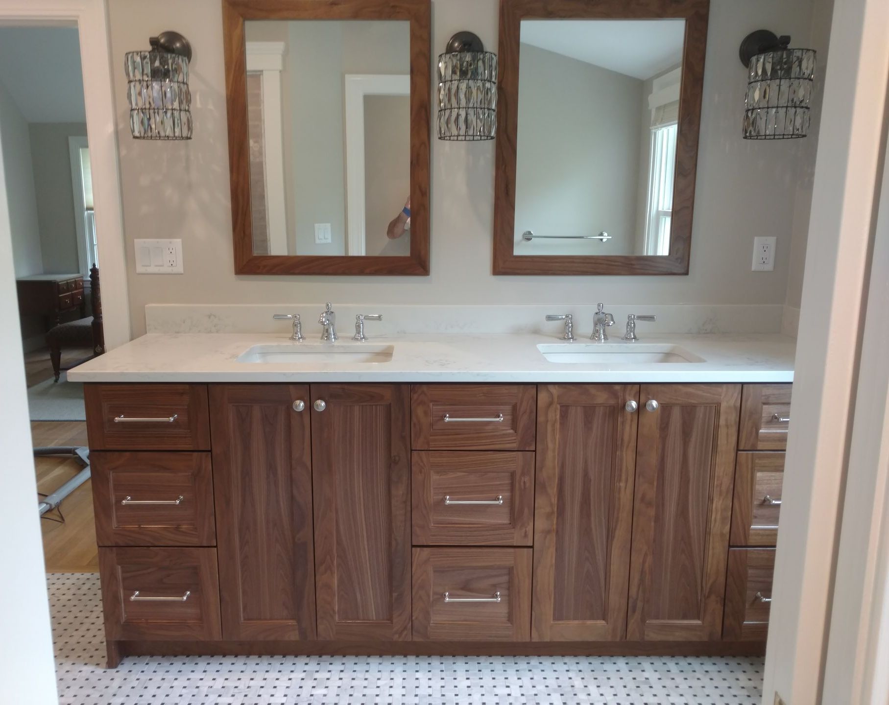 18. Modern Walnut Vanity. Flat Slab Door/Drawer Fronts with Matched Grain.
