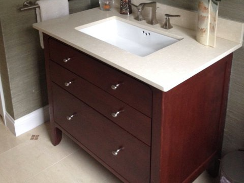 13. Furniture Style Vanity, Made to look like a dresser. Stained Cherry.